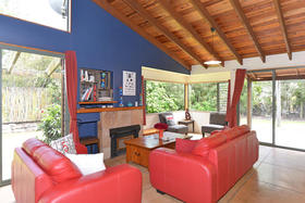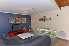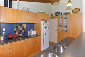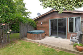 A modern kitchen mixed with colour and timber, open lounge/dining area with macrocarpa high stud ceilings. The spacious master bedroom is located downstairs looking out onto your own private spa with a bonus full-wall wardrobe as well as a large en-suite. Upstairs, there is 3 bedrooms, separate bath, shower and toilet. For the winter months, you have the option of a wood-burner or heat-pump.