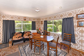 Built on a 3637sqm in 1976 it retains its original decor. It's a sheltered easy care property set back from the road with plenty of space for energetic children, pet and chooks. The house is constructed of Hardy's Montana board, with aluminum joinery and a corrugated iron roof. It's insulated throughout. Its four bedrooms all have double wardrobes and garden vistas. The property is sunny and elevated with quiet neighbours on each side. Trees and shrubs abound and presently there are two vegetable plots. Beyond the fenced area the sunny slope, bounded by a hop crop with the mountains beyond, lends itself to terracing for vegetables or perhaps an olive grove. It's only a three-minute walk to Upper Moutere primary school, the village store, the Lutheran church and the Moutere Inn - the local communal watering hole. High school buses to both Motueka and Nelson serve the community.