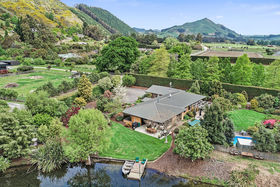 First time ever coming to the market this unique lifestyle block is a rare gem that would seldom arise. Imagine spending the summer months, paddle boarding and kayaking around your own private lake, well listening to the bird life thrive in this spectacular setting. This property has endless amounts of WOW features. Set in totally private surroundings with a breath taking outlook. This is a once in a life time opportunity to buy your piece of private paradise. Set on 4 acres of land this property boasts beautiful mature grounds. Copious amount of shed space with a high stud 4 bay shed, plenty of room for a camper van, Bus, boat etc. workshop space with 3 phase power and separate Helicopter Hangar.