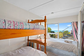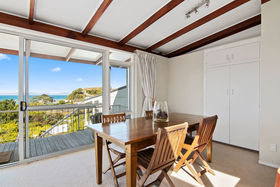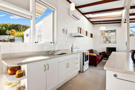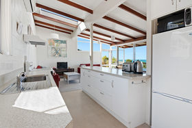 The light and bright, user friendly galley-style kitchen is open to the living space and encompasses fabulous views out to Little Kaiteriteri Beach. Ranch sliders open to the covered deck where you can relax in absolute heaven with your morning coffee while soaking up the rays and views and contemplating your day. To keep warm inside on the colder days the heat pump will do the trick or turn it to air con on those muggy summer nights.