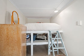 Via the exterior staircase, pop downstairs to the slightly more rustic two bunk rooms, ideal for your extra guests or the kids. Adjacent to these rooms is a communal space housing the laundry and a storage area.