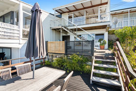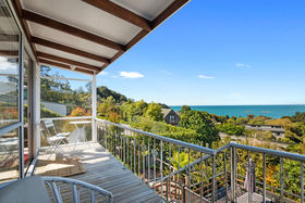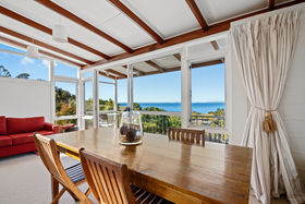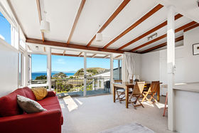 Nestled in the garden is the perfect, sheltered lower deck. Relax as the sound of the ocean and birdsong become the background music of the day. When you are keen to have a splash in the sea it is a short stroll to the golden sands and the wonder of seaside enjoyment.
