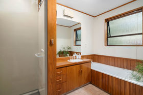 Up a couple of steps and you'll find the sleeping arrangements - three bedrooms, all with built in double wardrobes, and for a bit of fun the third bedroom has a ladder up to a mezzanine room perfect for sleepovers, reading nook or gaming room, complemented by a family bathroom with shower and bath, and separate toilet. A large laundry offers the perfect utility space and provides for extra storage. The insulation has also been upgraded to current rental requirements.