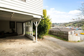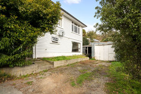 On a FREEHOLD elevated, sunny and quiet spot, with open plan living, woodburner, patio area and 3 double bedrooms upstairs serviced by a family bathroom, and large rumpus / office / workshop downstairs plus carport and garage, the dwelling would be a great first home, where you could add your own touch, or perfect as an investment.