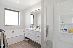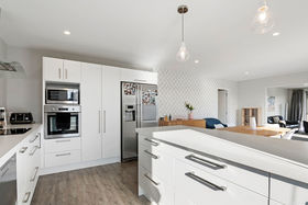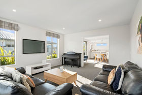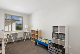 From the hallway there's the access to the double garage and laundry, along with the three bedrooms, family bathroom, toilet and a comfortable master, which comes complete with a walk-in wardrobe and ensuite. Throughout the home the décor is easy on the eye, with neutral floor coverings and window treatments, with feature wallpaper adding a chic flourish.