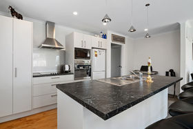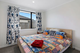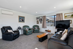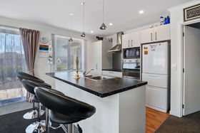 The home's floor-plan is well thought out and comprises light and airy open-plan kitchen-dining and lounge with a heat pump, a comfortable master bedroom with a chic ensuite and walk-in wardrobe, a laundry; a double garage and two double guest bedrooms with 'pocket' doors, connecting each one to the well-appointed family bathroom.