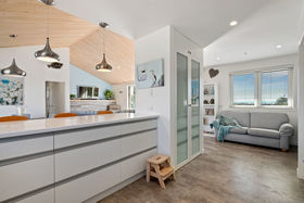 This delightful residence has been extensively refurbished, with on-trend décor, quality fixtures and fittings, plus some neat features that provide extra space for visitors and family. The upper floor features an elegant and well-appointed kitchen with quality appliances, an adjoining diner, plus a lounge with a stylish gas fire in a bespoke surround that has ducting to keep everywhere toasty. The internal hall leads to two bedrooms and the chic bathroom. In the summer you can throw open the patio doors and relax on the expansive decks, in winter you can enjoy the same view of Tasman Bay and D'Urville Island from the comfort of your fireside armchair.
