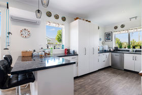 Thoughtfully designed and immaculately presented the home is wonderfully positioned for the sun and views. Morning sun in the modern kitchen, with 5 ring gas hob and electric oven, plenty of storage, and open dining/family room will set you up for the day. When entertaining or looking for some quiet time the spacious north facing formal lounge can be closed off for separation. With seemless indoor / outdoor integration in mind, you can enjoy a covered and sheltered deck off the living, or for lovely alfresco dining step out from the dining area to an attractively planted and private entertaining area.